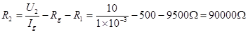 ,满偏电流Ig为1mA,求电阻R1,R2的值。![]()
