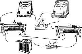 在使用伏安法测量小灯泡在不同电压下的电阻值的实验中,采用如图1所示的电路可以方便地调节灯泡两端的电压值.图中变阻器的总电阻值R1和R2的大小满足R1=10R2.