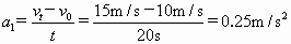 做匀变速运动的火车,在20s内速度从10m/s增加到15m/s,加速度是多大?汽车急刹车时做匀变速运动,在2.0s内速度从10m/s减小到零,加速度是多大?