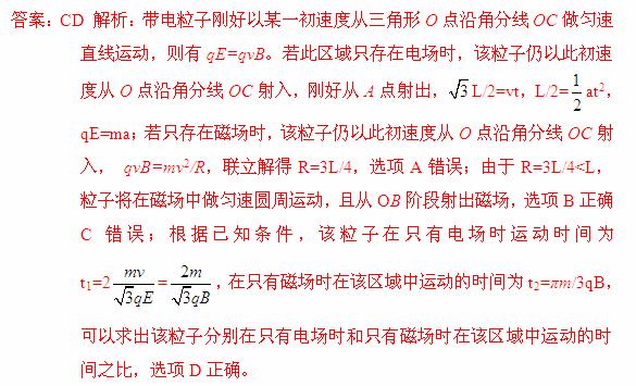 D.根据已知条件可以求出该粒子分别在只有电场时和只有磁场时在该区域中运动的时间之比
