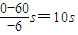 此时的速度v=v+at=60m/s+(-6×6)m/s=24m/s