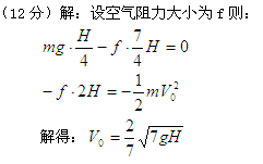 某弹性小球从距地面高度H处静止下落,假设小球与地面发生弹性碰撞(没有损失能量),但由于恒定大小的空气阻力的影响,小球只能上升H.现为了使小球与地面碰撞后还能上升原来的高度H,则必须给小球多大的初速度v0?