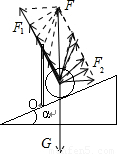 解答:解:小球受重力、斜面支持力F1和挡板支持力F2,将F1与F2合成为F,如图