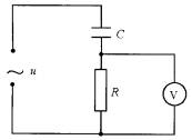 电容器的容抗与电阻串联,根据串联分压原理可知电阻两端电压应小于电源电压,而电压表测的是电阻两端的电压,故C项正确,本题答案为C项.