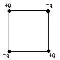 在正方形的两个对角上各放一个点电荷+Q,在其他两个对角上各放一个点电荷—q,当作用在+Q上的库仑力的合力为零时,电量Q和q之比值为______