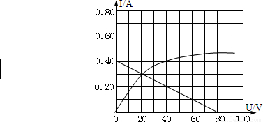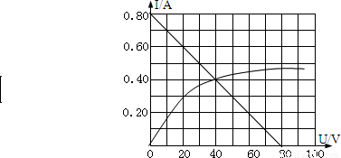 这两条曲线的交点为U=20V、I=0.3A,同时满足了电路结构和元件的要求,此时通过电阻的电流值IR=2I=0.6A.