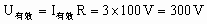 C.电阻两端的交流电压的有效值为300 V,峰值为![]()