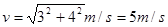 【解析】由图象知,物体在x方向做速度大小为3m/s的匀速直线运动,在y方向做初速度大小为-4m/s加速度为2m/s2的匀减速直线运动,根据运动的合成与分解得初速度大小为