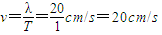 解答:解:由图可知,这列简谐波的波长为20cm,而波传播四分之一个波长用时0.25s,故周期T=0.25s×4=1s,所以该波的波速