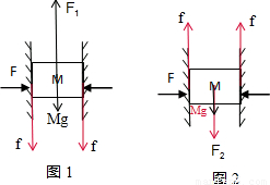 如图,一质量为M的物块被两竖直板用力F夹住,物与板间的摩擦系数为μ,要使物块匀速向上运动而两竖直板不动,向上拉物块的力最小为 .若要使物块匀速向下运动而两竖直板不动,向下拉物块的力最小为 .