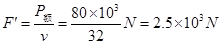 (4)当速度为32m/s时,大于匀加速运动的最大的速度,此时处于恒定功率启动阶段,设牵引力为F′,加速度为a′,由