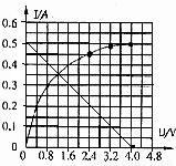(3)、因电源电动势为4.0V、内阻为8Ω,则短路电流为0.5A,在I-U图象中将0.5A与4V两点用直线连接如图所示