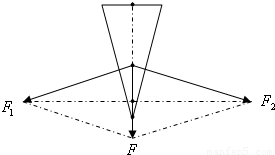 解:将力F分解为F1、F2两个分力,这两个分力分别与劈的两个侧面平行,根据对称性,两分力F1、F2大小相等,这样,以F1、F2为为邻边的平行四边形就是一个菱形.
