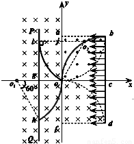 【答案】分析:(1)由题意,电子在第一、四象限内都能通过原点O,则知电子的偏转方向,根据左手定则判断出磁场的方向.电子从b点射入的电子从O点射出时,画出轨迹,由几何知识得到轨迹半径,根据洛伦兹力提供向心力,即可由牛顿第二定律求出初速度v的大小.