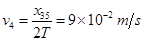 试题分析:从图中读出5、6之间的距离为37.5cm-24.0cm=13.5cm,3、2之间的距离为6.0cm-1.5cm=4.5cm,利用逐差法有x56-x32=3aT2,求出a=3.0×10-2m/s2;位置4的速度为