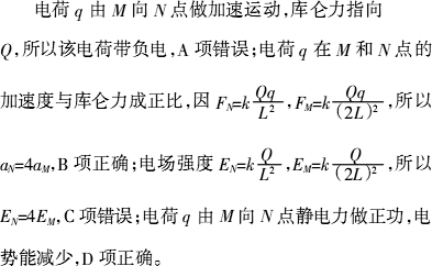 q在N点的加速度是在M点加速度的4倍N点电场强度是M点电场强度的2倍