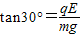解答:解:小球静止在电场中,受到重力、线的拉力和电场力而平衡,所以小球受电场力方向水平向右,根据平衡条件得