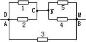 [解析]本题采用等电势法来化简电路,按从A到B的顺序把5个电阻分成1、2、3、4、5,由于结点A、D间用导线连接,这两点电势相等,当电流从A点流入时,可以同时流向电阻1、2、3,从电阻1和电阻2流出的电流汇合C点,到达N点,结点M和B点间用导线相连,也是等势点,电流再从电阻4和电阻5从B点流出,而流向电阻3的电流,直接经MB流出,其等效电路如下图示,等效电阻为0.5 Ω. [规律总结]在分析复杂电路时,首先应找出各个结点,凡是用导线相连的两结点是等势点(如果有理想电流表时可以将电流表看作导线),可以看成连在一起,(如图中的A、D),连在相邻两个结点间的电阻是并联,当把最基本的电路等效后,可以对高一级的电路进一步等效.