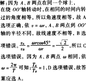 A.A、B两点的角速度相等
