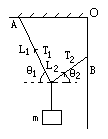cosθ=1/2,θ= 由竖直方向力的平衡可知 2Tsinθ=mg,⑥ 由⑤⑥可得 T= |