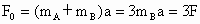 先隔离后整体,研究弹簧压缩到最大时刻, A、B的加速度相同,均向右.A对B的作用力F向右,产生的加速度为a,则 |