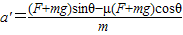 ,因为gsinθ>μgcosθ,所以Fsinθ>μFcosθ,可见a′>a,即加速度增大.故C错误,D正确.