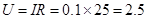 D、当通过导体的电流是0.1A时,导体两端的电压是2.5V