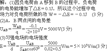 ×10-5的负电荷由A点移到B点,其电势能增加了0.1 J,已知A、B两点间距离为2 cm,两点连线与电场方向成60°角,求:![]()