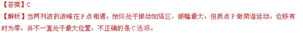 A.质点P的振动始终是加强的 B.质点P的振幅最大