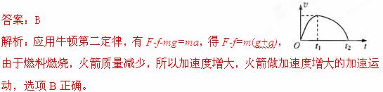 肥市一模)用火箭发射人造卫星,假设火箭由静止竖直升空的过程中,火箭里燃料燃烧喷出气体产生的推力大小不变,空气的阻力也认为不变,则下列图中能反映火箭的速度V或加速度a,随时间t变化的该过程为‘’