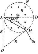 粒子打在D点,磁感应强度B应等于零. 粒子打在M点时,磁感应强度方向必须垂直纸面向外,粒子在洛伦兹力作用下沿AM弧做匀速圆周运动,如图下所示.