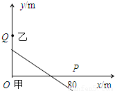 如图所示,质点甲以8m/s的速度从O点沿Ox轴正方向运动,质点乙从点Q(0m,60m)处开始做匀速直线运动,要使甲、乙在开始运动后10s在x轴上的P点相遇,求乙的速度.解答: