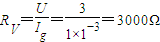 有一个电流表G,内阻Rg=30Ω,满偏电流Ig=1mA,要把它改装成为量程为0~3V的电压表,关于改装方法和改装后的电压表内阻,下列说法正确的是( )A.并联一个0.05Ω的电阻,电压表内阻是0.05Ω