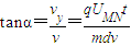 (2)设粒子射出极板时的速度大小为v,偏向角为α,粒子在MN间的运动时间为t,偏转位移为y,有:
