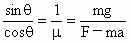 两次 a相等,由式①②③④得:F -μmg=F+Fcosθ-μ(mg+Fsinθ).整理得:
