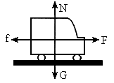 选汽车作为研究对象,汽车在运动过程中受到四个力:重力、地面对汽车的支持力、牵引力和阻力,如图所示.
