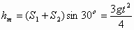 由图可知,F合=mgsin30°=ma(1分) 得 加速时S1=gt2/2;减速时S2=Vt2/2a=gt2(1分) |