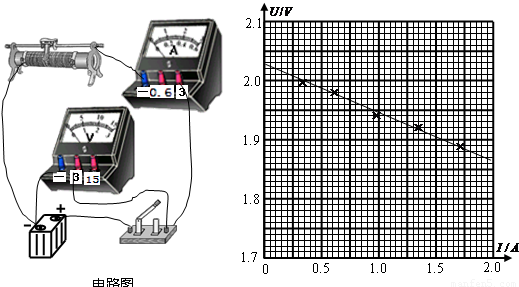 (2)由表中数据作出各点的坐标,采用描点法可画出U-I图象;由公式及图象可知,图象与纵坐标的交点为电源的电动势;图象的斜率表示内电阻;由坐标中找出两合适的值求出斜率即可.