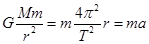 火星绕太阳做匀速圆周运动的周期为T,轨道半径为r,万有引力常量为G,则火星的线速度为v=____________、太阳的质量M=__________、火星的加速度为a=__________。