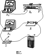 (2)该同学根据上述设计的实验电路测出多组数据,绘出如图丙所示的I1-I2图线(I1为电流表A1的示数,I2为电流表A2的示数),则由图线可以得到被测电池的电动势E=____________V,内阻r=_____________Ω。(保留两位有效数字)