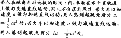 C.人跳起后,车厢继续向前运动,所以人落下后必定偏离跳起位置一些,只是由于时间很短,偏后距离太小,不明显而已