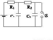 如图所示,ε=10V,C1=C2=30μF,R1=4Ω,R2=6Ω,电池内阻可忽略,先闭合开关s,待电路稳定后,再将s断开,则断开S后流过电阻R1的电量为多少?