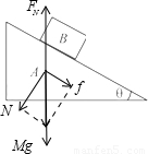 点评:本题关键是先对物体B受力分析,得到动摩擦因素μ=tanθ,然后得到物体B对斜面题的摩擦力和压力的合力一定竖直向下.