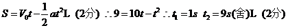 (2)刹车后前进9m所用的时间;(4分)