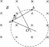 解:(1)根据左手定则可判定粒子带负电.轨迹圆圆心的确定:过a点做速度的垂线,即向心力的方向,过弦ab中点做垂线必过圆心,两线交点为轨迹圆圆心.如图所示.