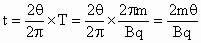 (2)带电粒子做匀速圆周运动,洛仑兹力f做向心力. 根据牛顿定律 f=qBv 可得轨迹圆半径 ① 根据几何知识可知速度方向与弦ab的夹角θ为弦ab所对圆心角的一半,sinθ=S/2R,R=S/(2sinθ) ② 将②式带入①式得 (3)粒子由a点运动到b点的时间t为弦所对圆心角2θ是2π角的几分之一,t就是周期T的几分之一. 将①式带入 |