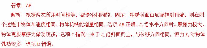 恒力F1、F2将质量为m的物体,由静止开始,沿相同的、固定、粗糙斜面由底端推到顶端,F1沿斜面