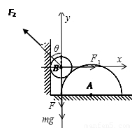 ÔÚ´Ö²ÚˮƽµØÃæÉÏÓëǽƽÐзÅ×ÅÒ»¸ö½ØÃæÎª°ëÔ²µÄÖù×´ÎïÌåA£¬AÓëÊúֱǽ֮¼ä·ÅÒ»¹â»¬Ô²ÇòB£¬Õû¸ö×°Öô¦ÓÚ¾²Ö¹×´Ì¬¡£ÏÖ¶ÔBÊ©¼ÓÒ»ÊúÖ±ÏòϵÄÁ¦F£¬FµÄ×÷ÓÃÏßͨ¹ýÇòÐÄ£¬ÉèB¶ÔǽµÄ×÷ÓÃÁ¦ÎªF1£¬B¶ÔAµÄѹÁ¦ÎªF2¡£ÔÚF»ºÂýÔö´ó¶øÕû¸ö×°ÖÃÈÔ±£³Ö¾²Ö¹µÄ¹ý³ÌÖУ¨ £©
