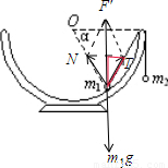 如图,一个半球形的碗放在水平桌面上,碗口水平,O点为其球心,碗的内表面及碗口光滑.一根质量不计的细线跨在碗口上,线的两端分别系有质量m1和m2的小球,当它们处于平衡状态时,质量为m1的小球与O点的连线与水平线的夹角为α=60°,则两小球的质量比m1/m2的值为( )A.1