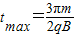 同理,t=0进入两极板的带电粒子在磁场中运动的时间最长为: